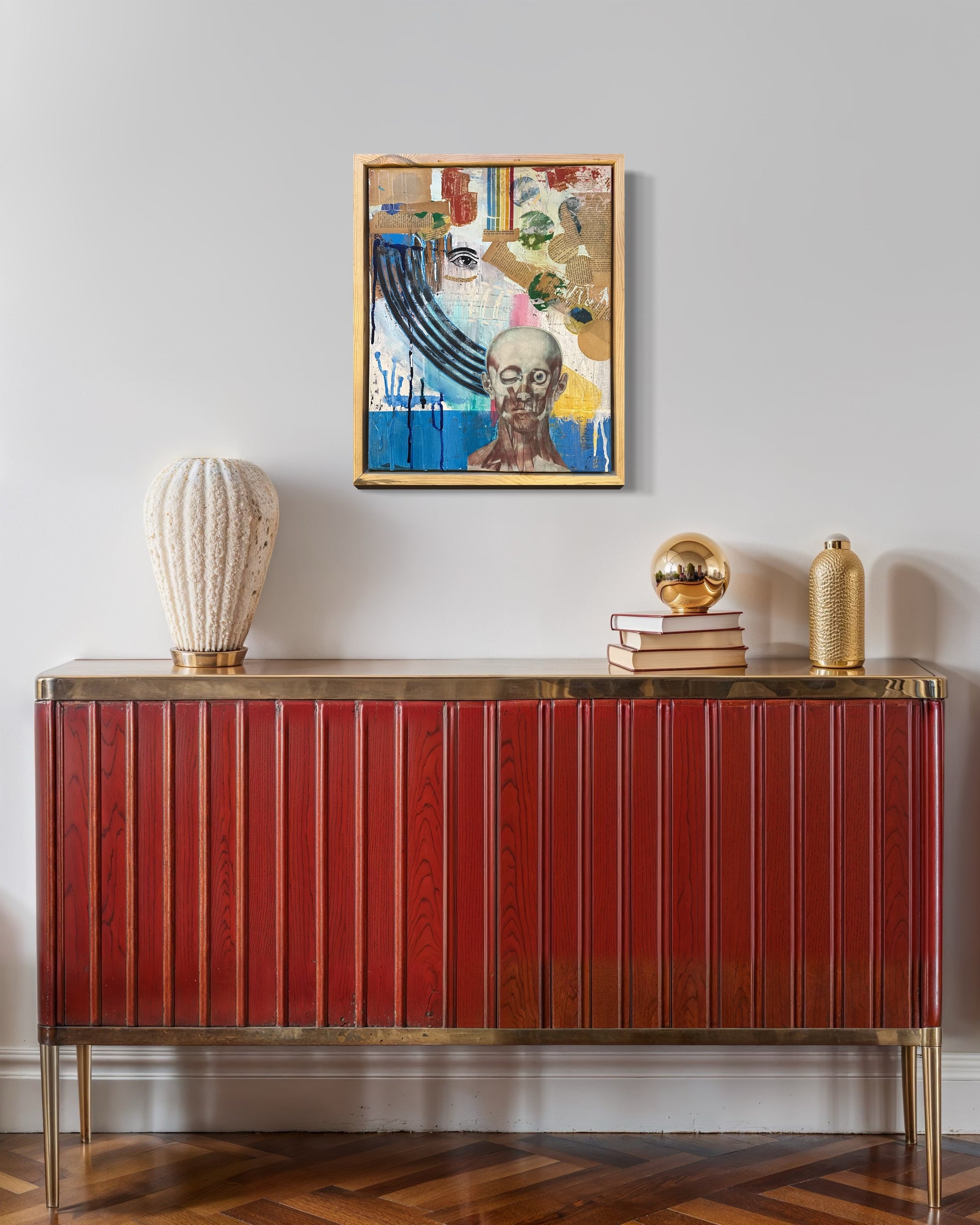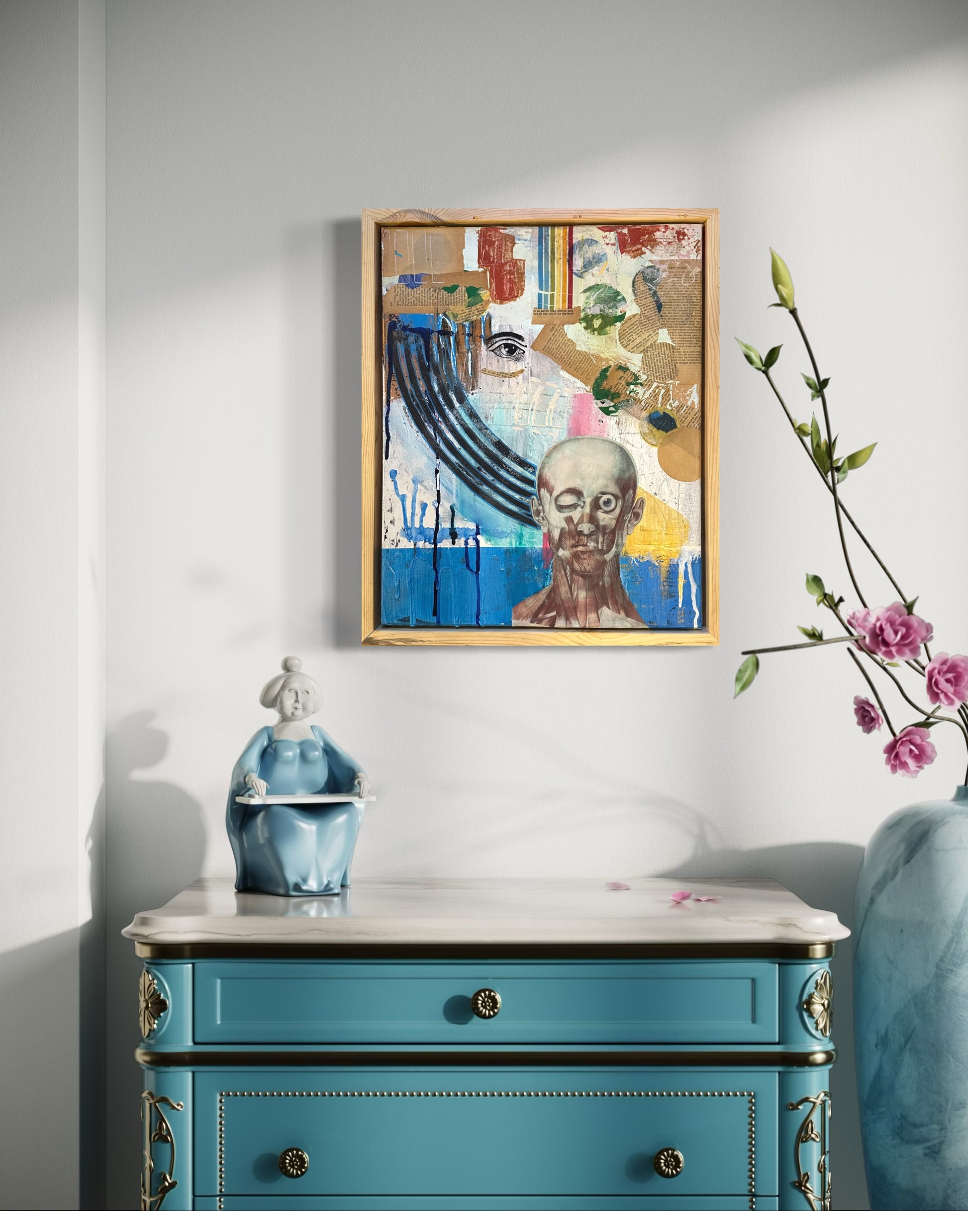 Anatomy of a Thought studies you as much as you study it. Layers of muted color and uneasy negative space create the sense that something just beneath the surface is shifting, forming, almost remembering you. The title becomes a quiet dare, a little warning, a mirror that doesn’t always reflect what you expect. It sits calmly on the wall, patient, observant… and it changes tone depending on who’s standing in front of it.