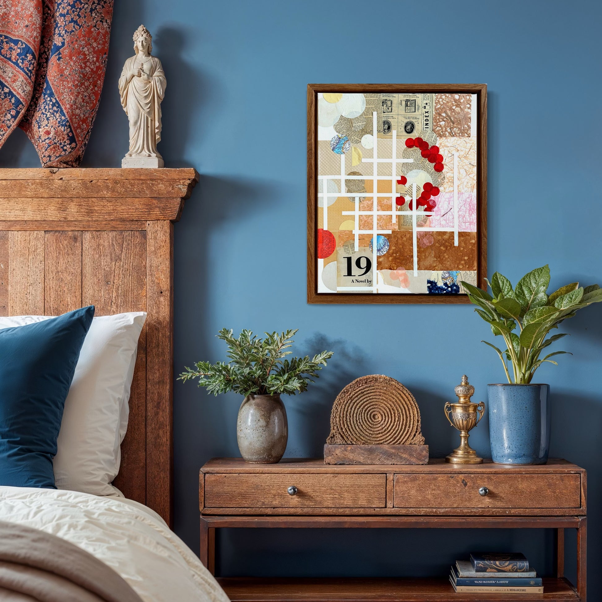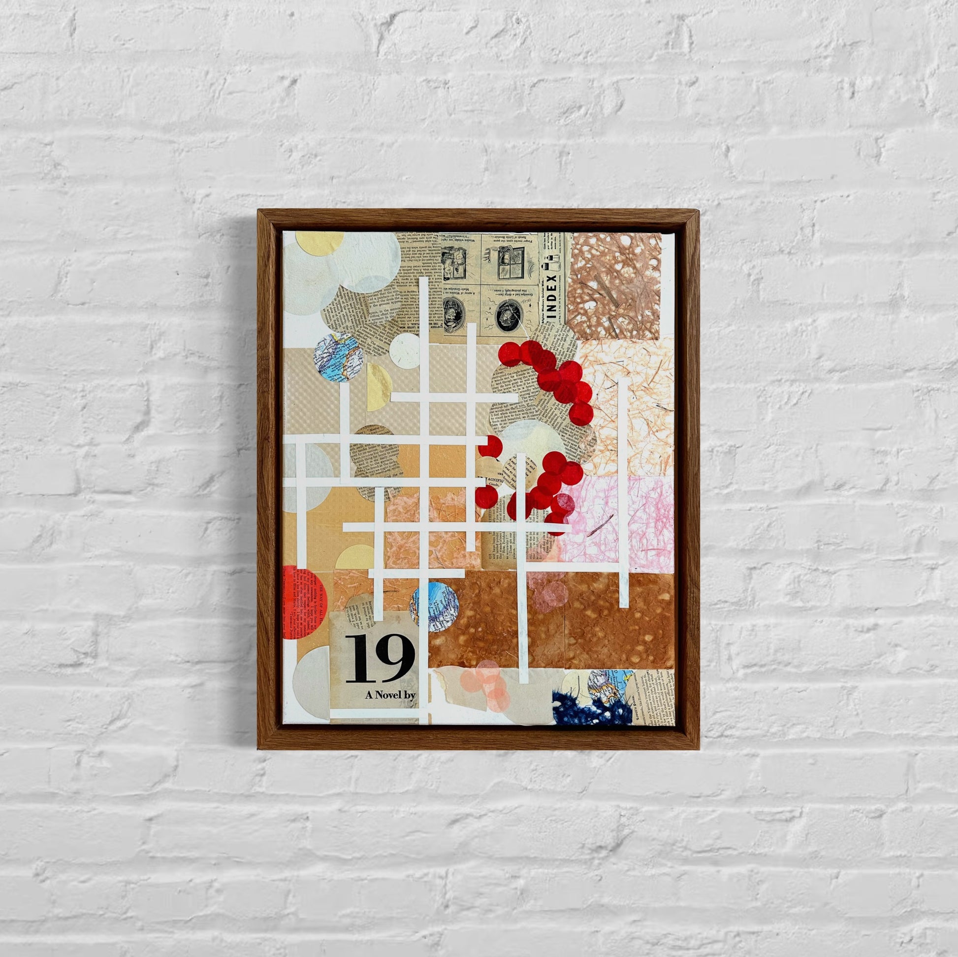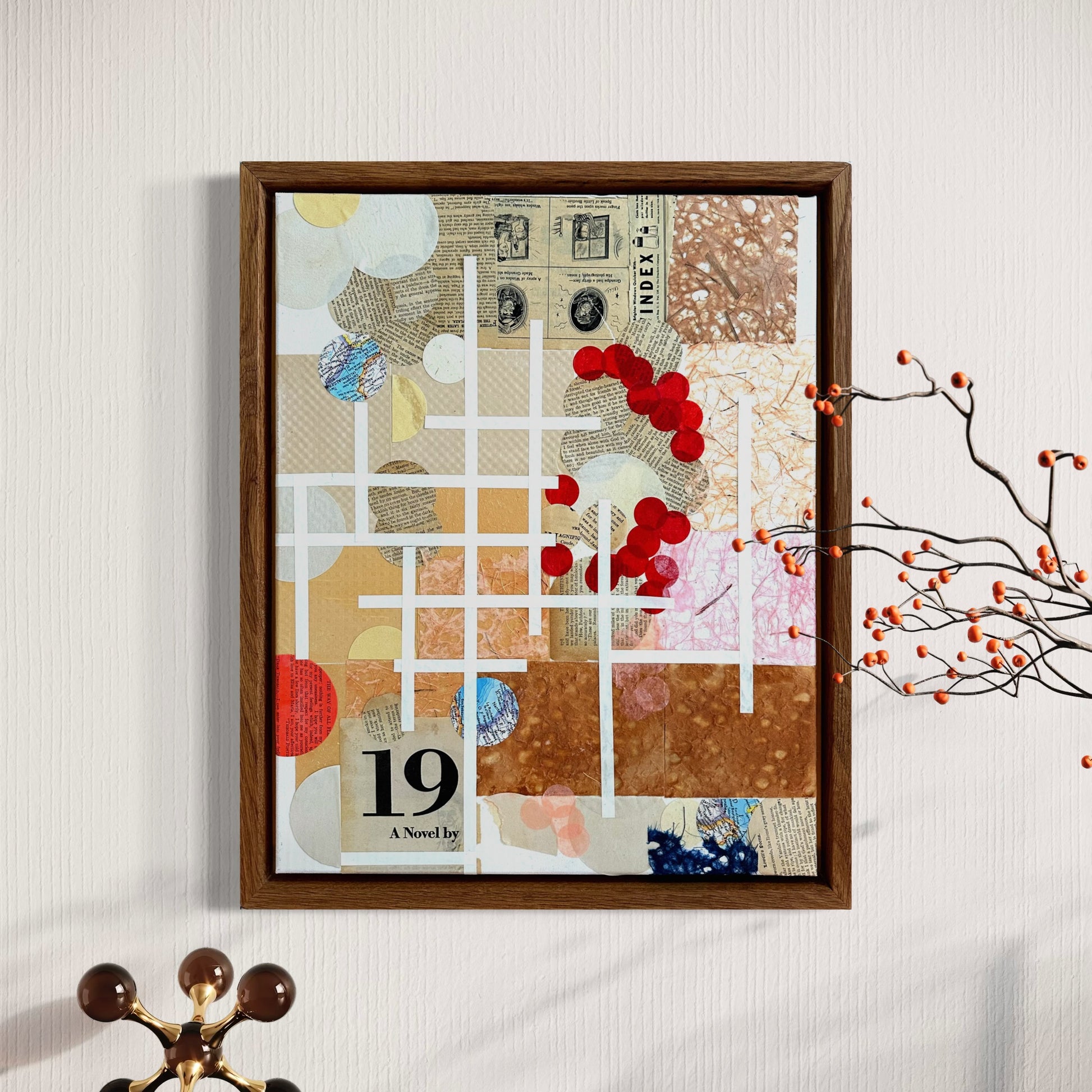Off the Grid is a geometric, tactile exploration of structure, randomness, and old media. Portland artist Jenson Nelson weaves together vintage book pages, layered textures, and bold acrylic shapes on cotton canvas, forming a grid that barely contains the visual noise beneath it.